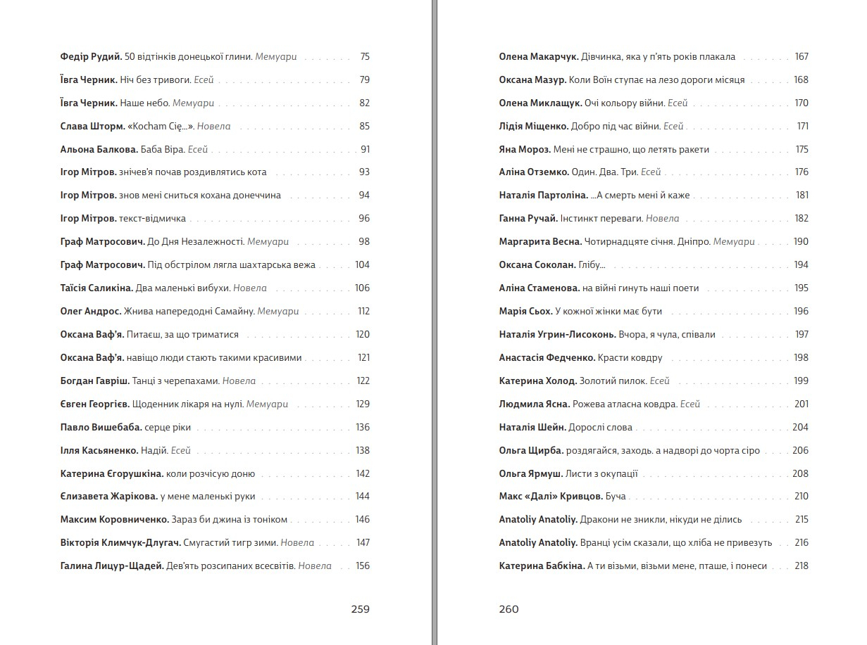 79 творів від різних людей — як військових, так і цивільних — описують різний досвід проживання російсько-української війни, але водночас їх усіх об’єднують спільні мрії і талант.