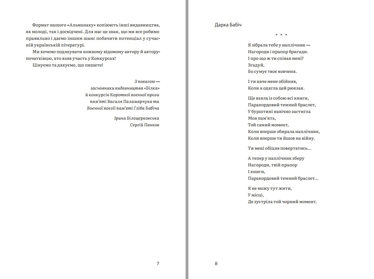 «Проєкт «Альманаху» ми задумали як пам'ять та надію — зберегти слова тих, хто загинув, — і водночас як можливість для нових авторів побачити свій твір оціненим та надрукованим.