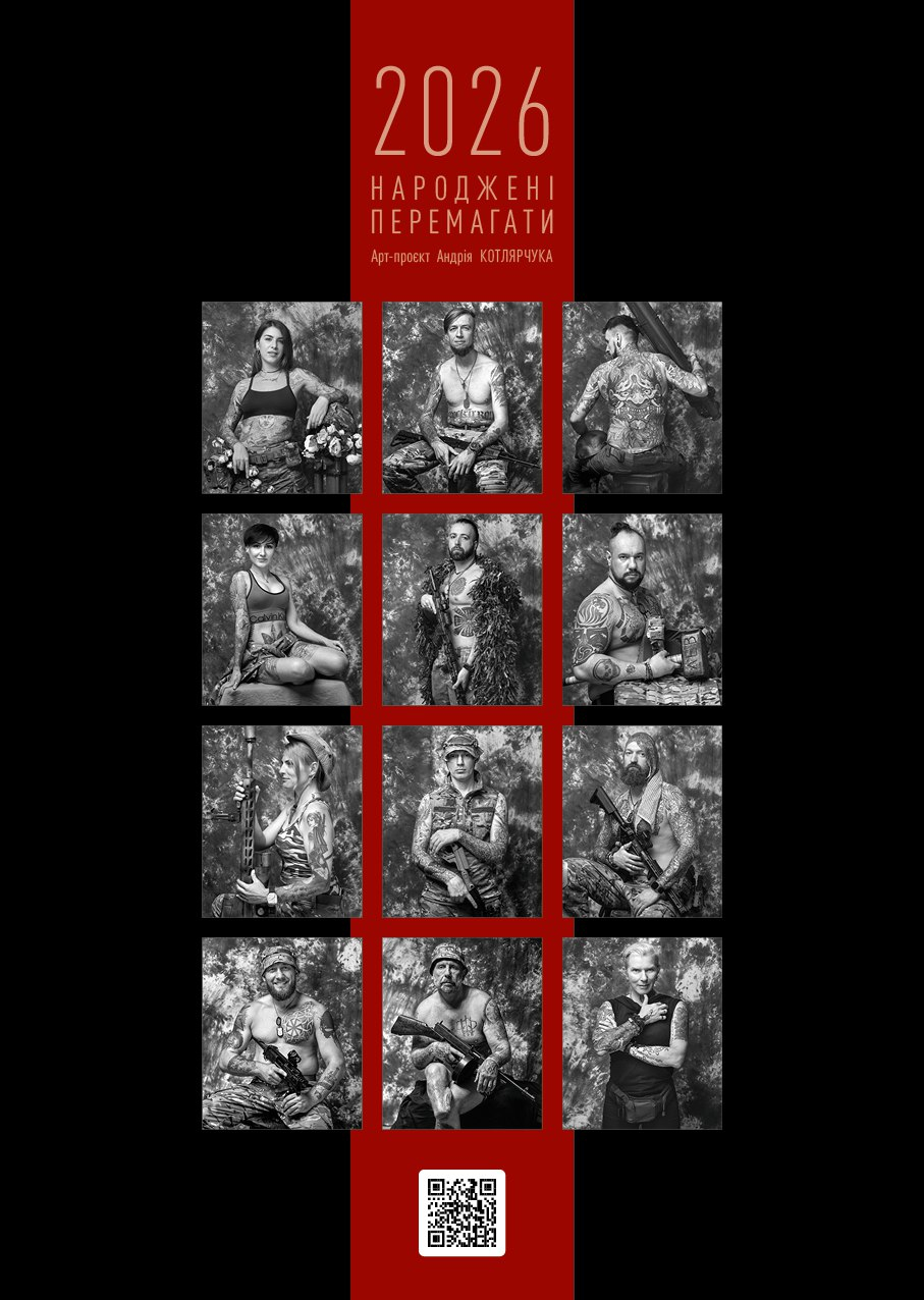 Мистецький календар на 2026 рік в оформленні фоторобіт Андрія Котлярчука. Арт-проєкт «Народжені перемагати»