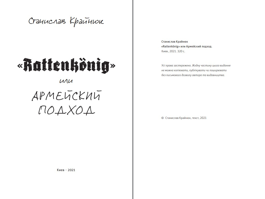 «Rattenkönig или Армейский подход» НЕ РЕКОМЕНДУЄТЬСЯ для читання військовослужбовцям, які цитують Статути з приводу та без приводу, тим, хто реалізує деспотичний стиль управління особистим складом, тим, хто зловживає психотропними засобами, представникам диванних військ, нафталіновим довбойобам, «заробітчанам», співробітникам комендатур, оперативних командувань, штабним офіцерам рангу «майор» або вище, крім начальників штабів.
