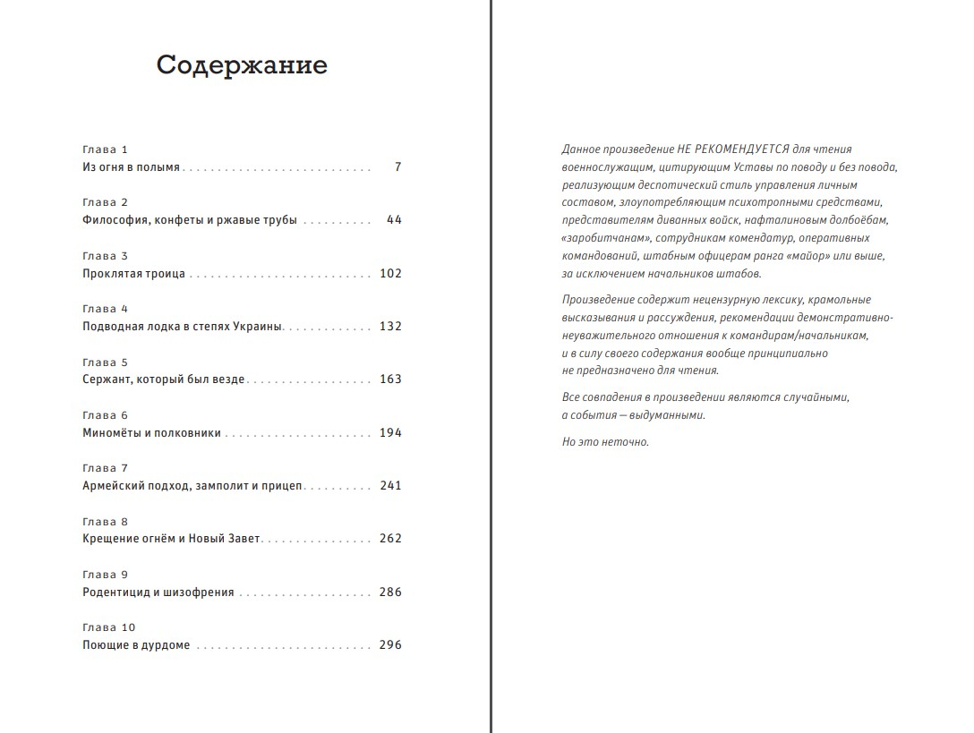 Твір містить нецензурну лексику, крамольні висловлювання та міркування, рекомендації демонстративно-неповажного ставлення до командирів/начальників, і через свій зміст взагалі принципово не призначений для читання.