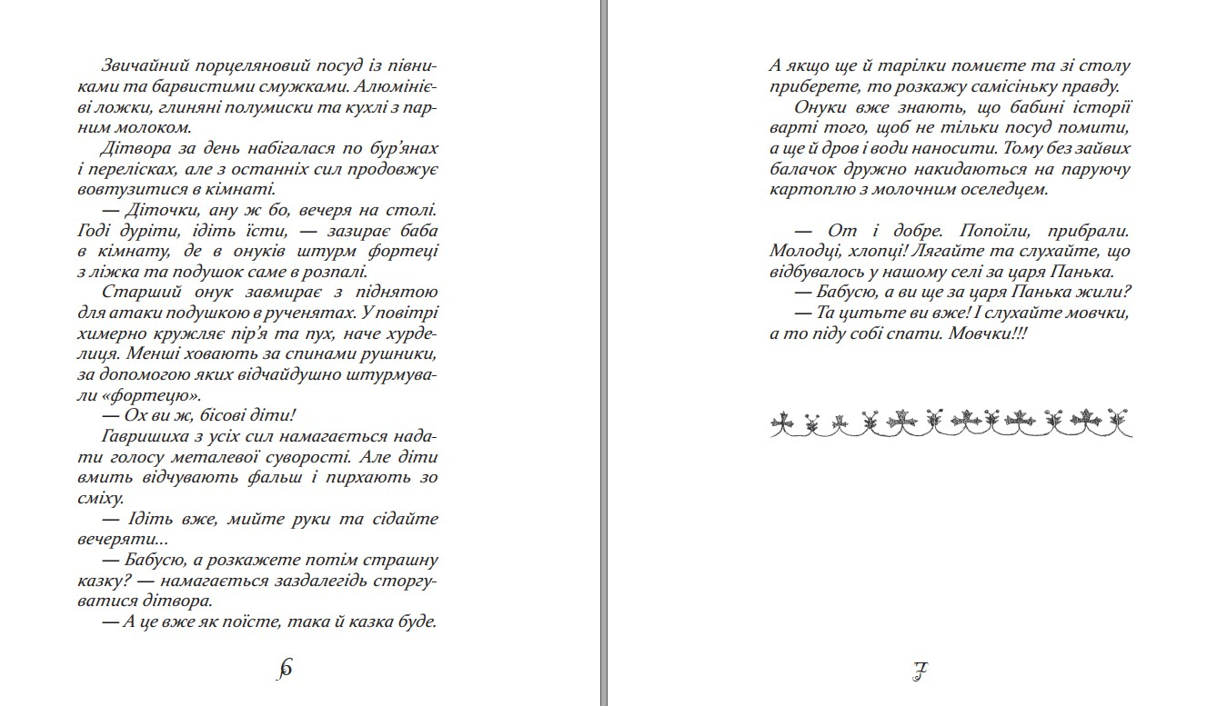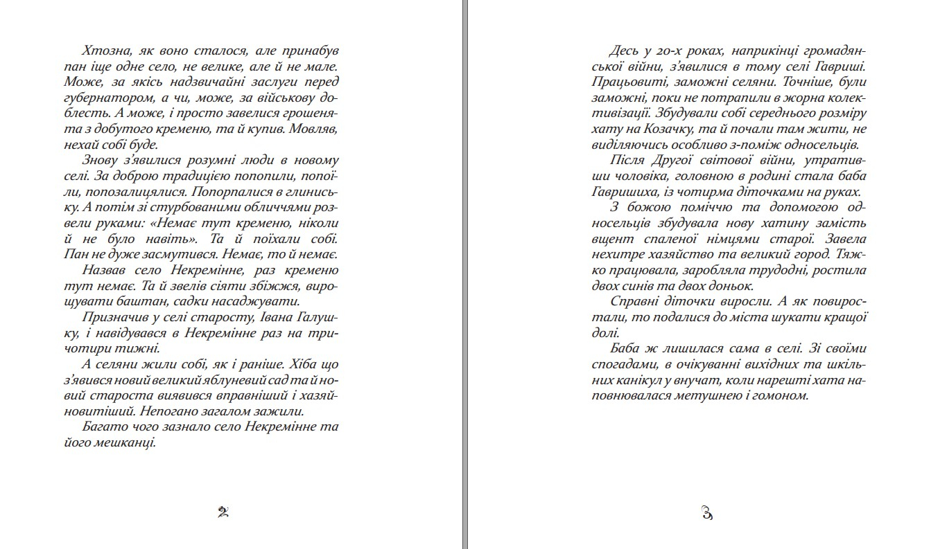 Я вас доправлю до звичайного українського села Некремінне, що загубилося серед ланів, лісів та прохолодних струмків. Запах свіжоспеченого хліба на світанку, вишні, абрикоси просто з дерев, молода картопелька, риболовля, тарзанка на ставку... Удень — трудова терапія, а коли сонце сідає, всі збираємося до баби Гавришихи, що живе у невеликій охайній хаті з очеретяною стріхою на Козачку, край села. Вона розповідає вигадані-не-вигадані історії, що відбувалися колись у Некремінному. Головні герої її розповідей — односельці та істоти, яких науковці відносять до української міфології і про яких баба оповідає, наче про цілком реальних сусідів. Що б не відбувалося в тих казках, людська гідність, взаємодопомога, доброта завжди перемагають. І хоч ті оповідки навіть слухати страшно, та все одно не можеш відірватися, бо відчуваєш, що тебе прикриває своїми невидимими, зітканими з любові крилами Берегиня — баба Гавришиха.