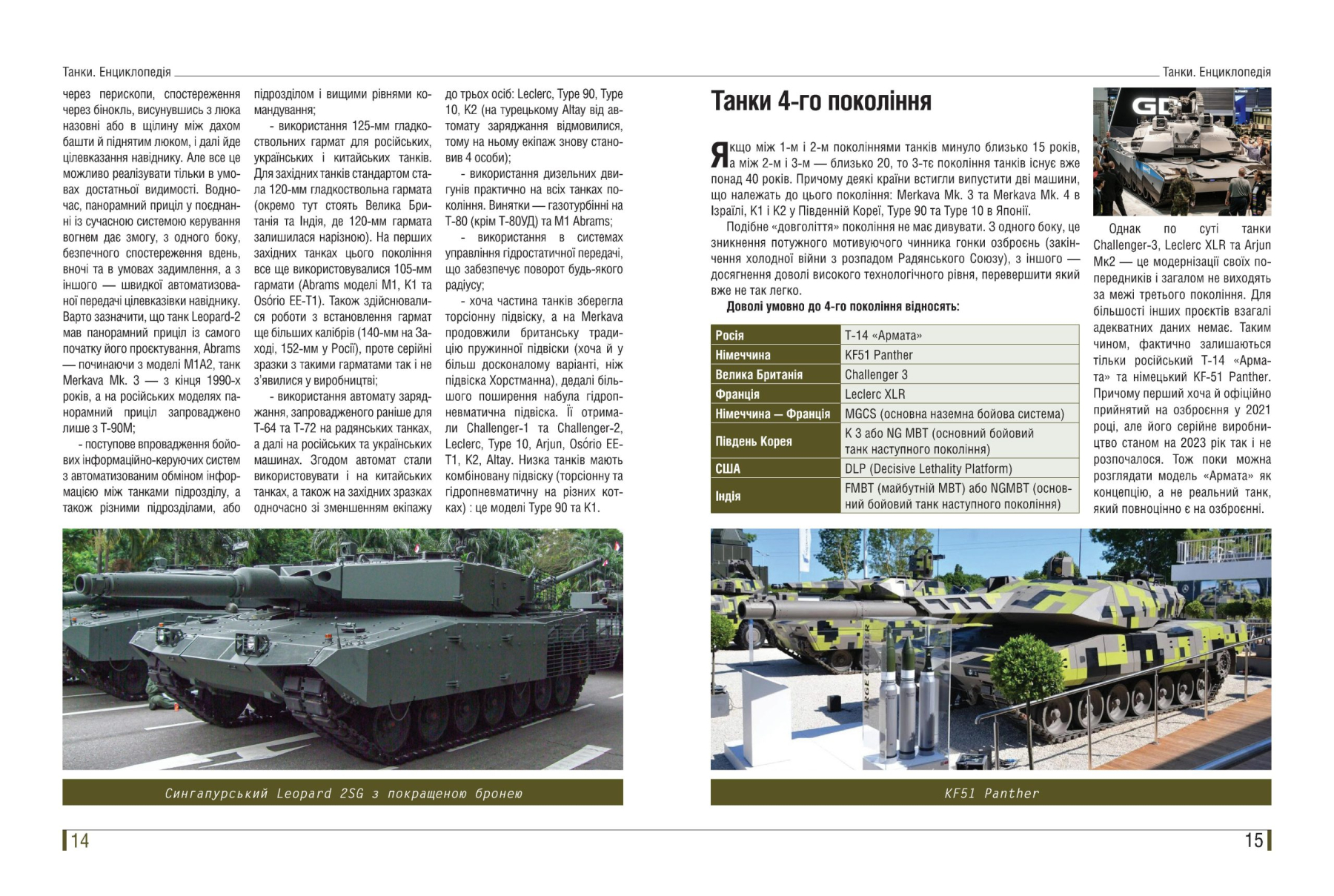 ТАНК. Впродовж наступних десятиліть провідні країни світу, конкуруючі між собою, розробляли та створювали нові, більш захищені, більш потужні, більш швидкі моделі танків. Так тривало до кінця 1980-х років, коли цей процес значно сповільнився через закінчення Холодної війни. Тому основу танкових сил більшості сучасних армій світу складають зразки, які були прийняті на озброєння ще у 70 – 80-х та частково модернізовані у 90-х роках ХХ століття. Проте процес розвитку, модернізації та вдосконалення не зупинився і зараз ми спостерігаємо появу танків нового, вже четвертого, покоління.