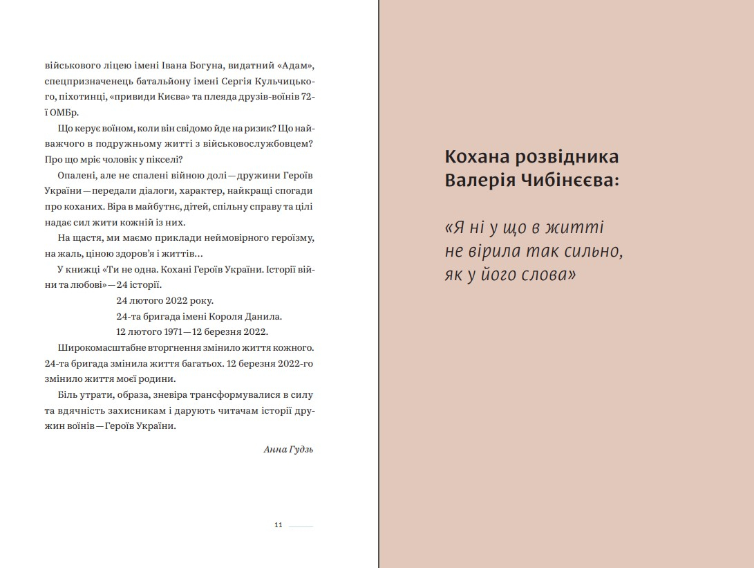«Ти не одна. Історії коханих Героїв України» - 24 розповіді про жіночі долі, історії найближчих людей військових, відзначених найвищою державною нагородою України.
