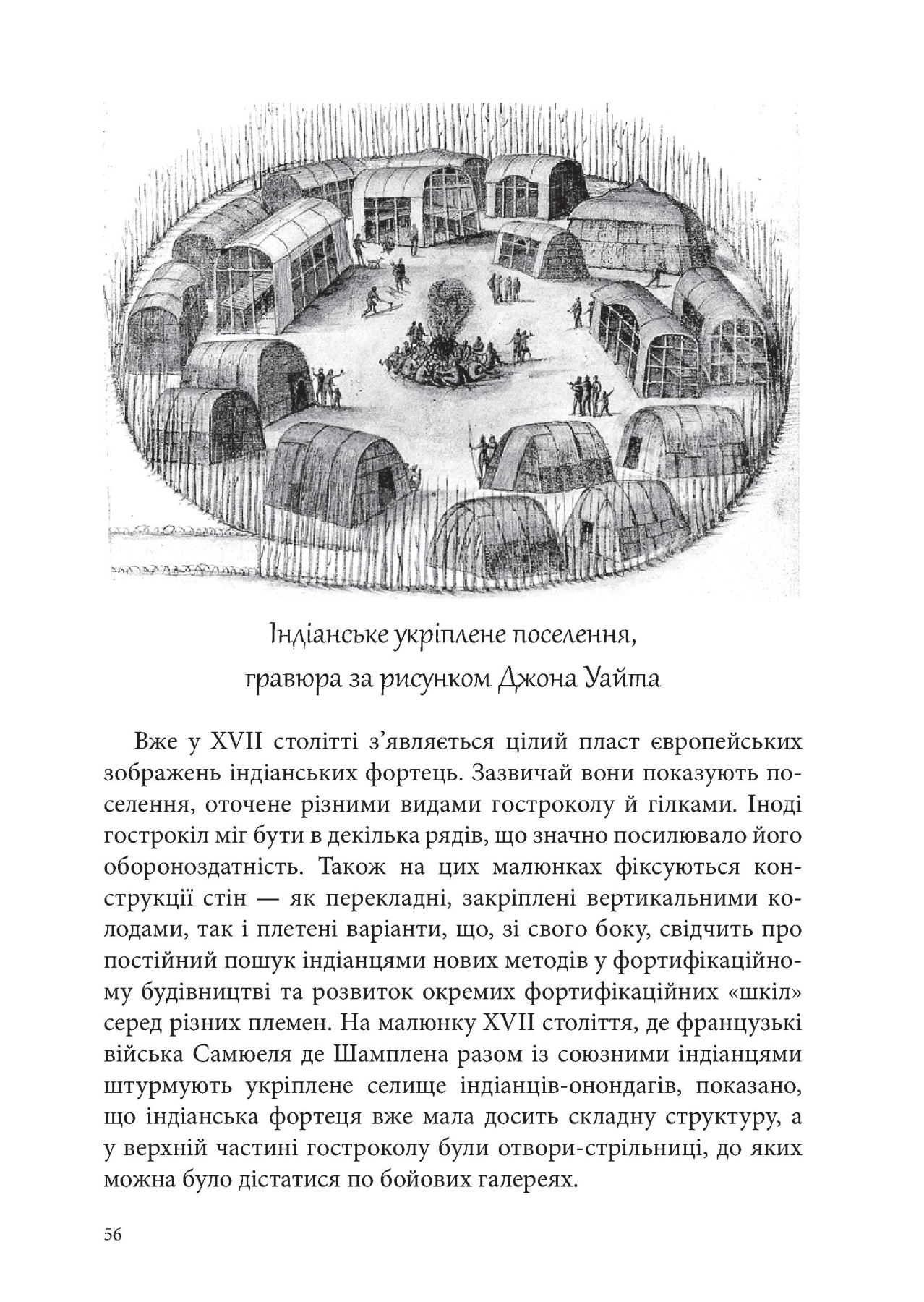 Колонізація нового континенту європейцями супроводжувалася активним будівництвом передусім фортифікаційним. Але ж місцеві індіанці також будували свої укріплення, щоб забезпечити собі безпечніше проживання. Протягом цього періоду в Північній Америці переплелися декілька європейських фортифікаційних шкіл, а також згодом сформувалися вже місцеві засоби оборони та атаки укріплень. Зрозуміло, що в одній книзі неможливо охопити усі фортифікаційні об’єкти Північної Америки, їх були сотні, тому автор зупинився лише на найцікавіших або типових оборонних спорудах. Книга містить велику кількість ілюстрацій — в ній представлені малюнки-реконструкції у виконанні автора, плани фортифікаційних споруд та історичні гравюри. Для зручності сприйняття матеріал викладено в хронологічному та географічному порядку.