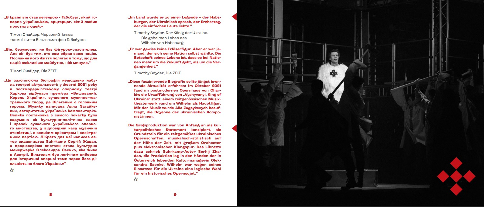 - У книзі використано фотографії з прем'єри опери в жовтні 2021 у ХНАТОБ