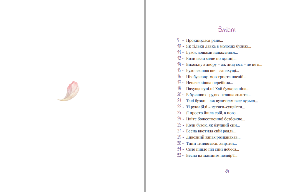 Дозвольте чарам весни відбутися сповна! Знайдіть щасливу квіточку з п’ятьма пелюстками в бузкових віршах, а в рожевих – свою рожеву мрію!